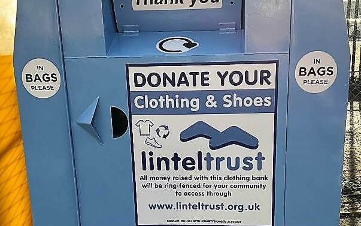 Although it’s only a blue recycling container this signifies the ongoing partnership between the Lintel Trust and Clyde Recycling and a new means to collect unwanted clothes and textiles and to fundraise for the Trust.